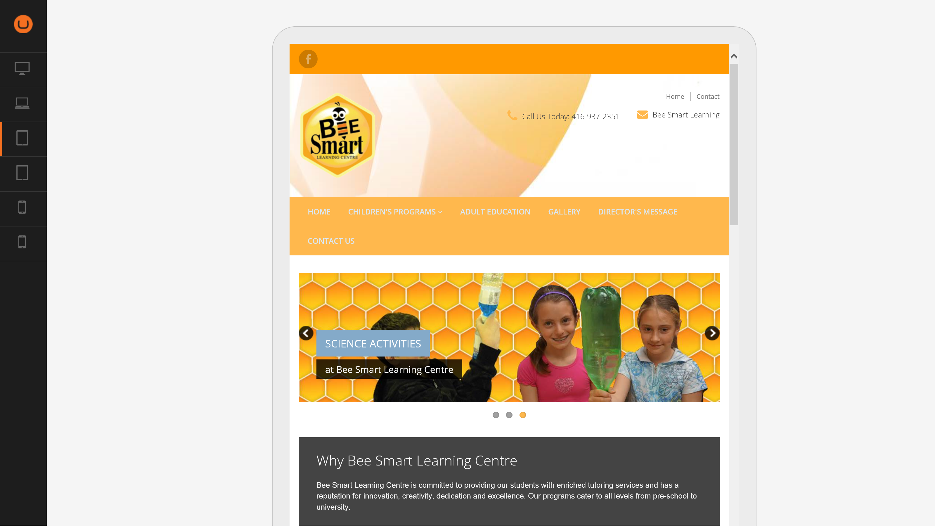 See how your custom website design will adapt to various devices! It's all easily visible in one place so no need to get your hands full with an iPad, a laptop, a smart phone and more! It's all visible using one screen! Virtually switch between devices and horizontal/vertical views using the side control buttons.
